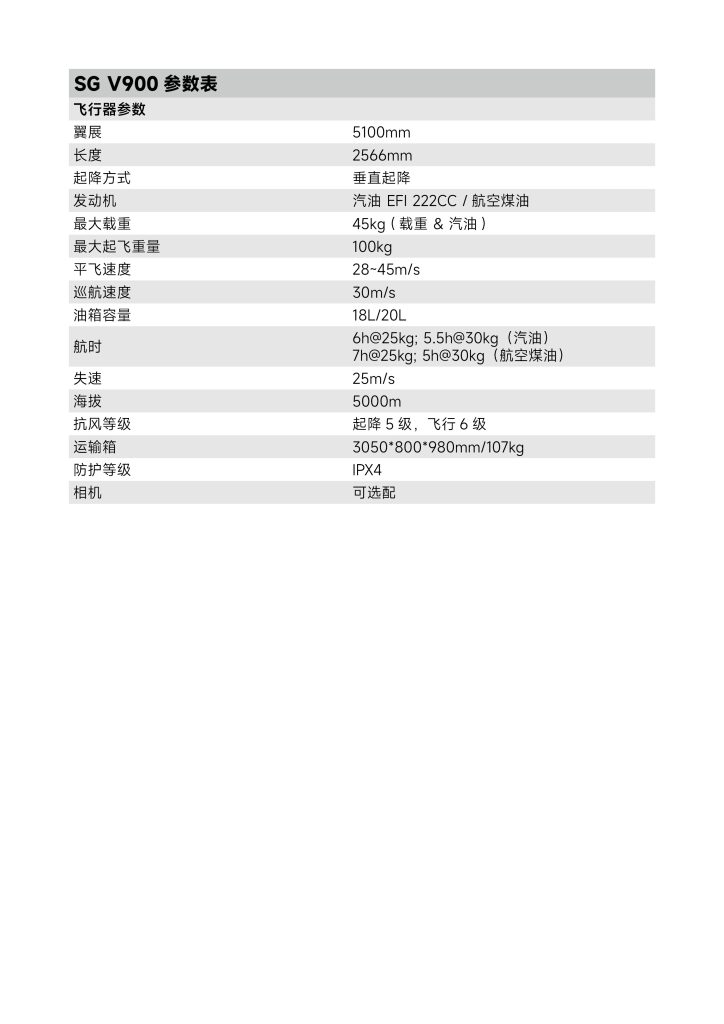 SG-V900 技术参数